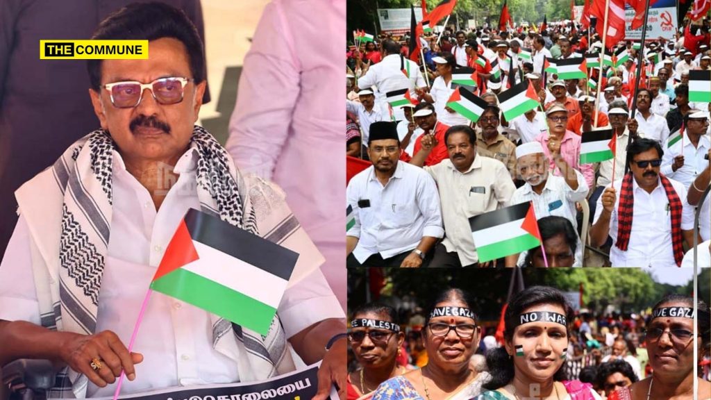 Tamil Nadu Chief Minister MK Stalin on Wednesday participated in a protest organized by the Communist Party of India (Marxist) in Egmore, Chennai, condemning Israel’s ongoing strikes in Gaza. The protest, which saw significant participation from DMK alliance workers and supporters waving Palestinian flags, comes amid growing concerns over civilian casualties in the conflict.