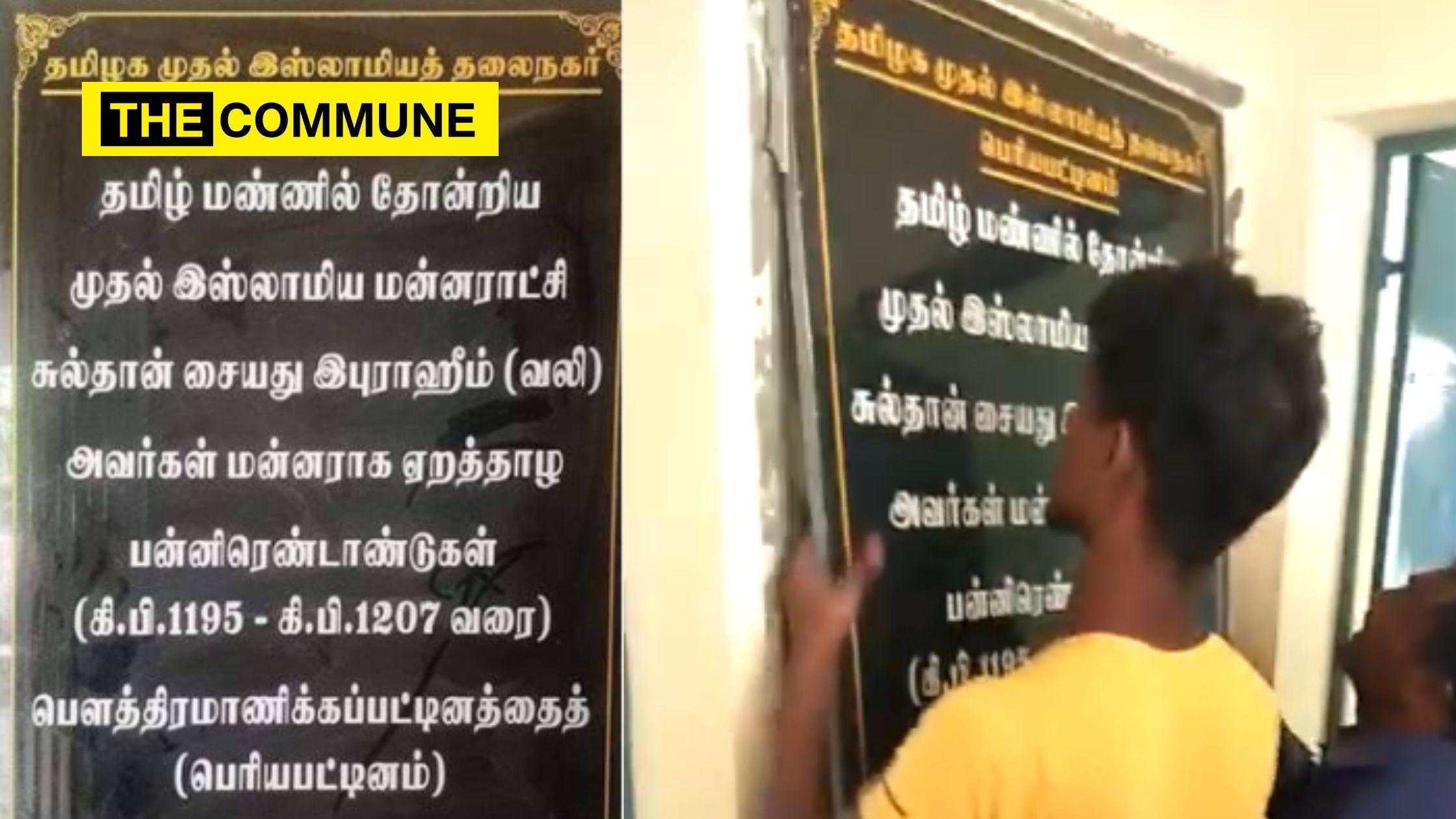 A panchayat office building constructed by the government at Periyapattinam village in Ramanathapuram district had a plaque with the inscription declaring that Periyapattinam is Tamil Nadu’s first capital of the Muslims.