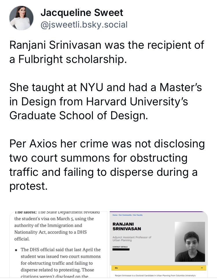 The News Minute recently published an article claiming that Ranjani Srinivasan, a Columbia University PhD scholar, was forced to flee the US after her student visa was revoked due to her pro-Palestine views. The article paints a picture of political repression, alleging that Srinivasan was targeted for her activism and that her visa revocation was unjust. However, a closer examination of the facts reveals a different story—one that The News Minute conveniently omitted or distorted to fit a specific narrative.