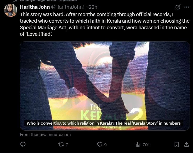The News Minute says they combed through Kerala’s 2024 gazette and so many records to try and show its audience, that love jihad was a myth, that conversions were a myth in Kerala – a state where Hindus are not the majority.