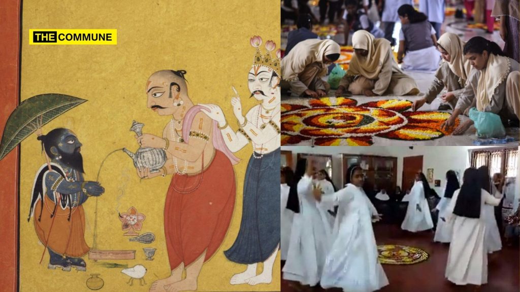 Congress leader Shashi Tharoor amplified Onam’s secular image in 2017 by sharing a viral video of Christian nuns performing the Thiruvathirakali dance around a Pookalam (flower carpet). His social media post, which garnered thousands of shares, presented this as emblematic of Kerala’s unique culture of oneness and communal harmony, using interfaith participation to underscore the festival’s secular character.
