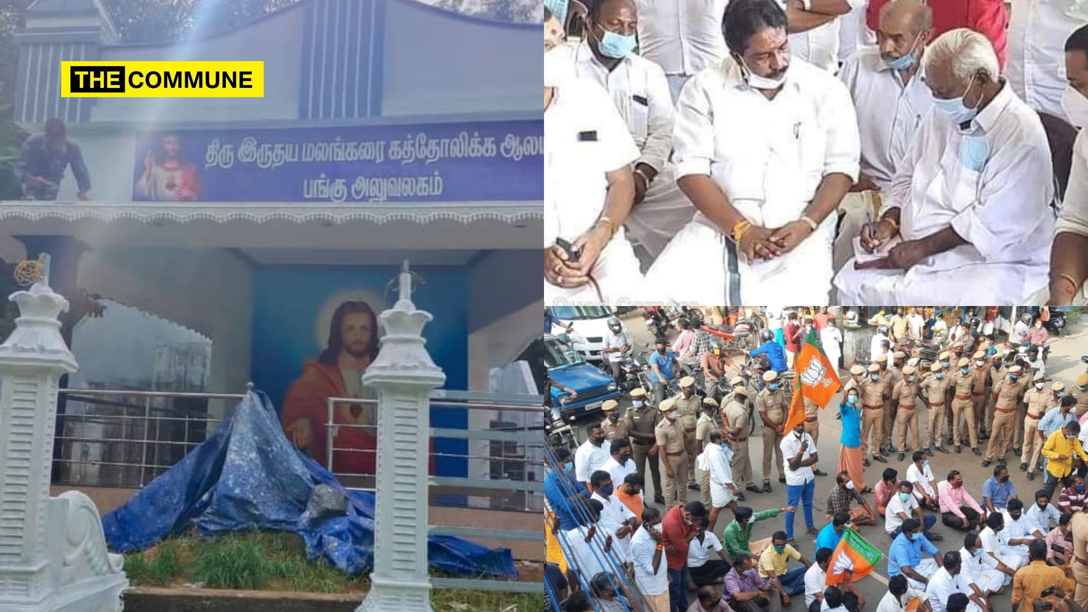 Those arrested were later released in the evening. BJP MLA M.R. Gandhi along with BJP District President Dharmaraj, RSS leader Rajendran, Misa Soman from Hindu Munnani and other Hindu activists held a consultation with the sub-collector. The sub-collector had said that permission was not granted to build a new church and that as an interim arrangement, the building would be covered by tarpaulin.