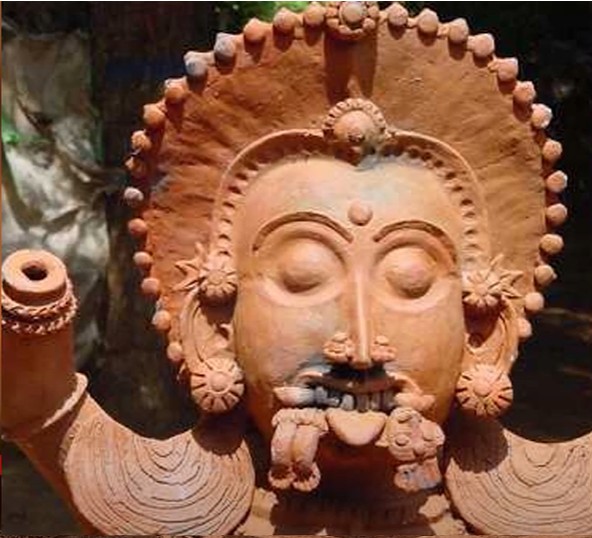 • A female terracotta figure with a wide mouth and prominent teeth