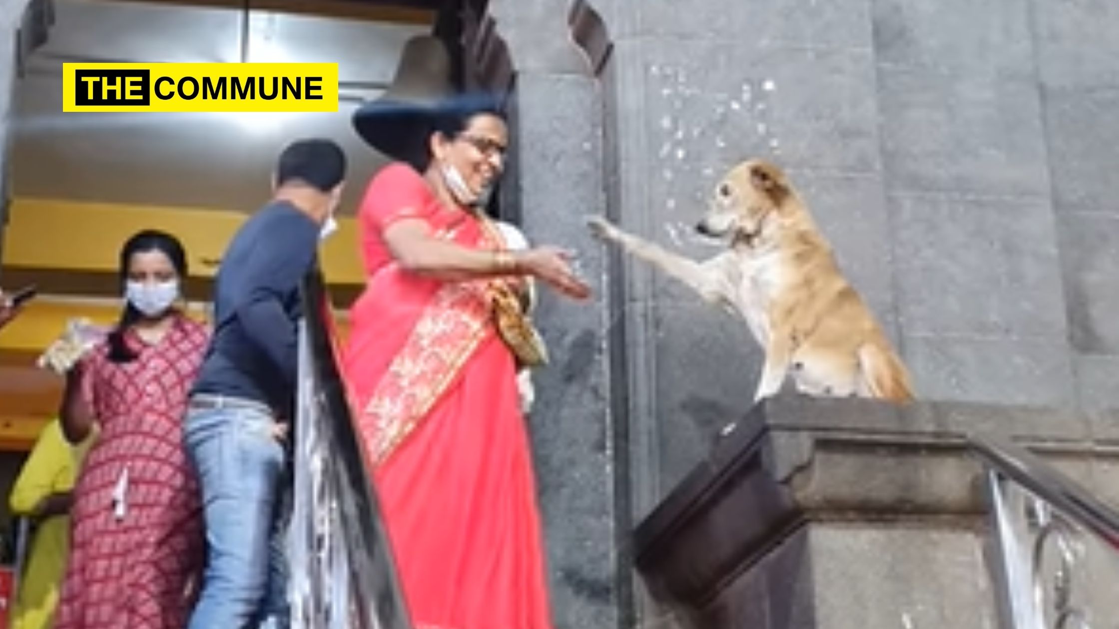 In the video, the dog can be seen bowing and giving blessings to the devotees coming out of the temple and shaking hands with some.