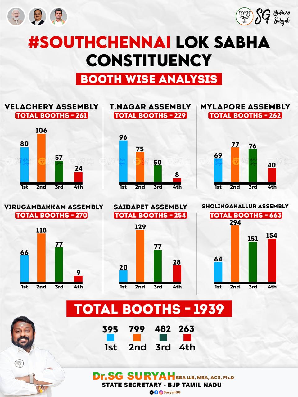 And 2024 was the election where SG Suryah proved his organizational skills. Across different Assembly seats under South Chennai Lok Sabha constituency, Suryah ensured that BJP came first or second.