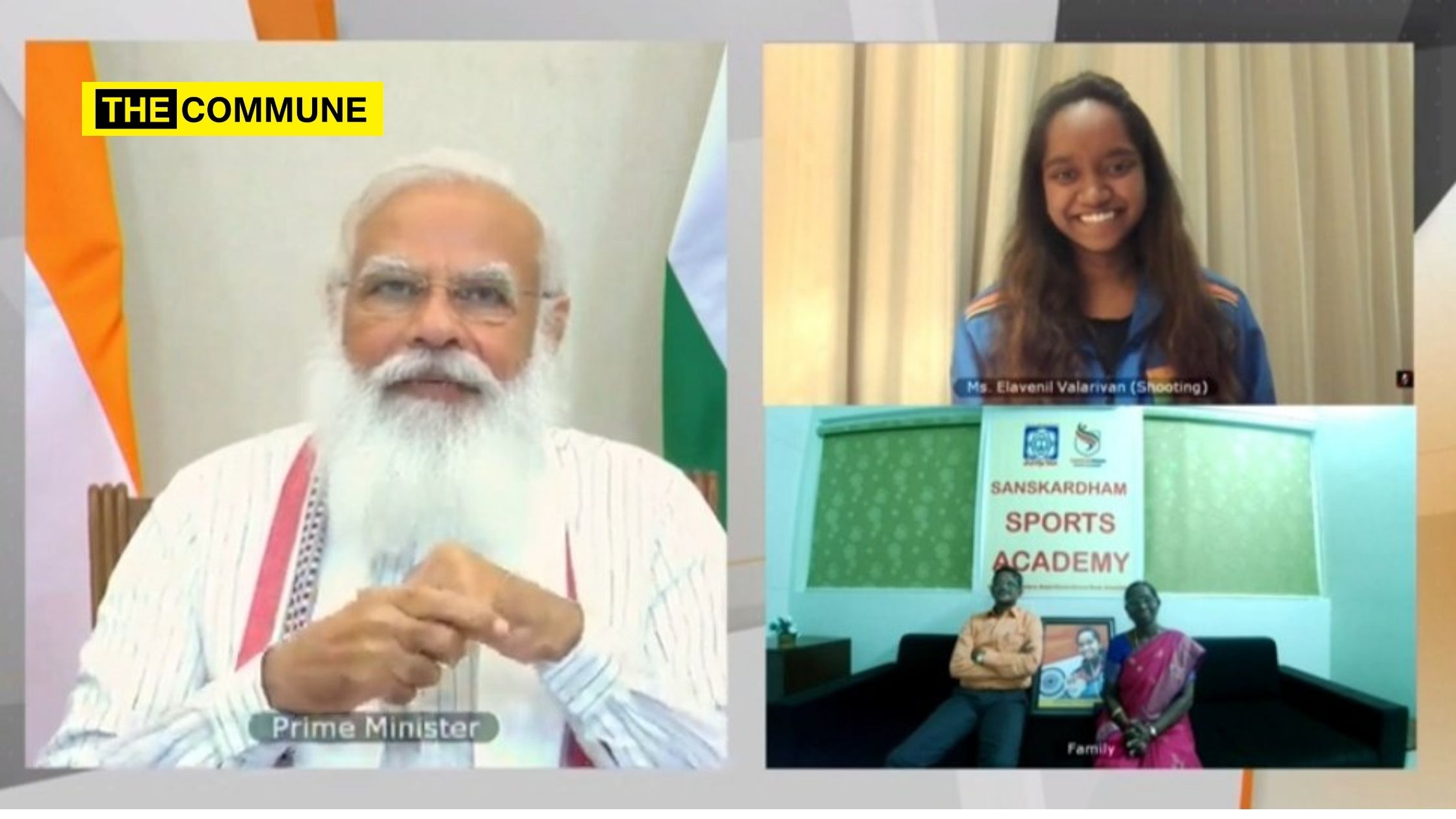 Speaking to Elavenil Valarivan, the famed shooter from Cuddalore, Tamil Nadu, who is going for the Olympics for the first time, the Prime Minister asked why she got interested in the sport. Elavenil Valarivan replied to the Prime Minister in fluent Hindi as her parents sat and viewed the interaction with pride.
