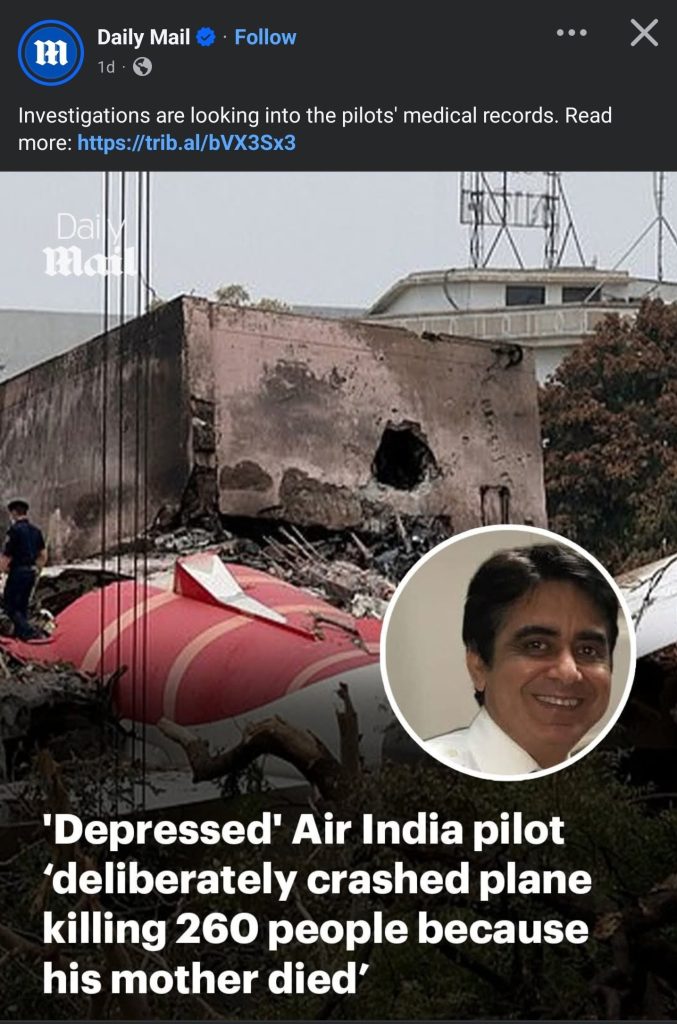 new york post daily mail pilot sumeet sabharwal air india ahmedabad plane crash boeing suicide depression