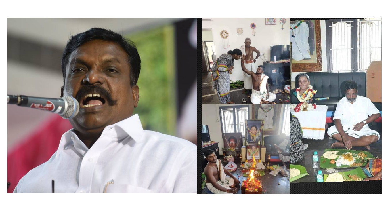 But today we have Thol. Thirumavalavan performing the 16th day rituals for his sister, the Santana way. “Why not abolish Sanatana Dharma now? When it comes to personal life you follow Santana Dharma, but you speak ill of it to do minority appeasement for vote bank”, political commentators and opponents ask.