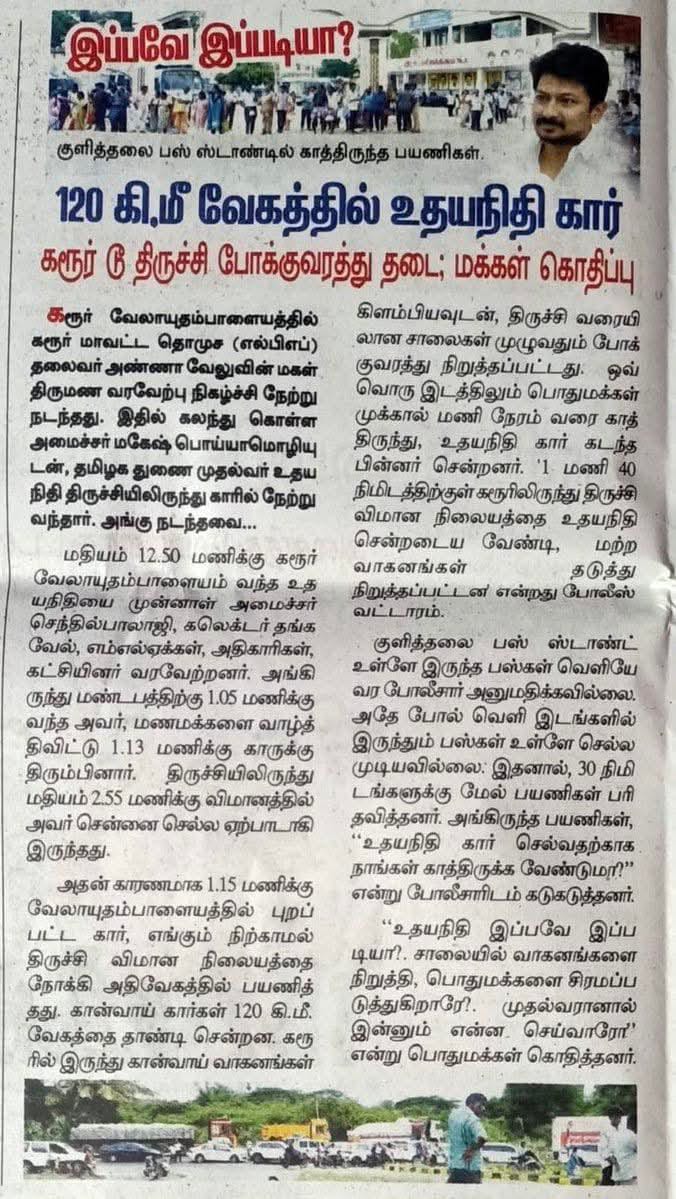 When political power is wielded without regard for ordinary citizens, it’s often the public that bears the consequences. A recent example unfolded in Karur, where commuters and bus passengers were caught in long delays during the visit of Tamil Nadu Deputy Chief Minister Udhayanidhi Stalin.