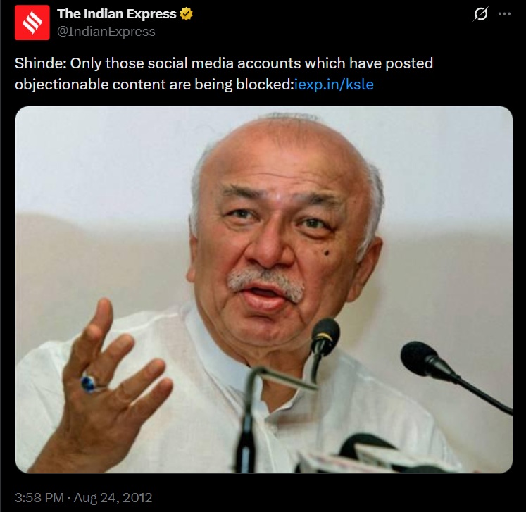 Looking back to August 2012, India saw one of its first major confrontations between government power and social media, when the UPA‑II regime ordered a sweeping block on Twitter handles and web links, including those of journalists and right‑wing groups, even as then Home Minister Sushilkumar Shinde insisted nothing more than “objectionable” content was being targeted.
