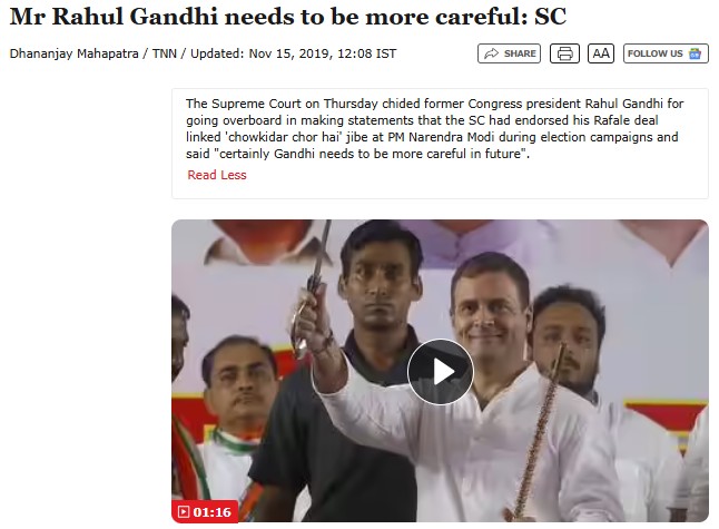 In 2019, the Supreme Court had similarly rebuked Gandhi for his “Chowkidar Chor Hai” campaign remarks against Prime Minister Narendra Modi, criticizing him for misrepresenting the Court’s stance. The bench advised Gandhi to be more careful and accept mistakes rather than attempting to justify them with lengthy affidavits.