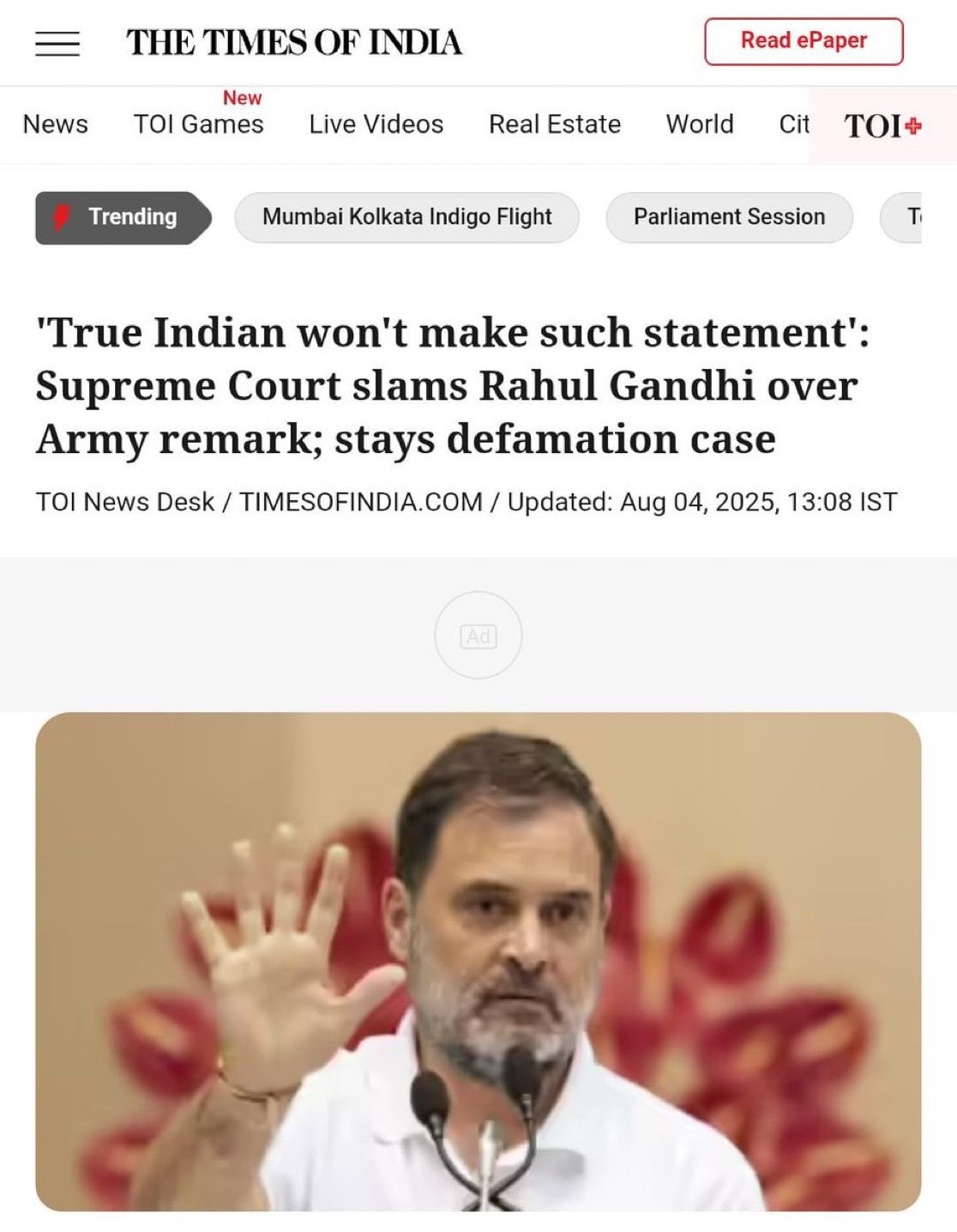 Similarly, the Allahabad High Court criticized Gandhi over the same statements, rejecting his plea against a summons related to alleged defamatory remarks against the Indian Army. The Court emphasized that while freedom of speech is protected under Article 19(1)(a), it does not extend to statements that defame the Army.