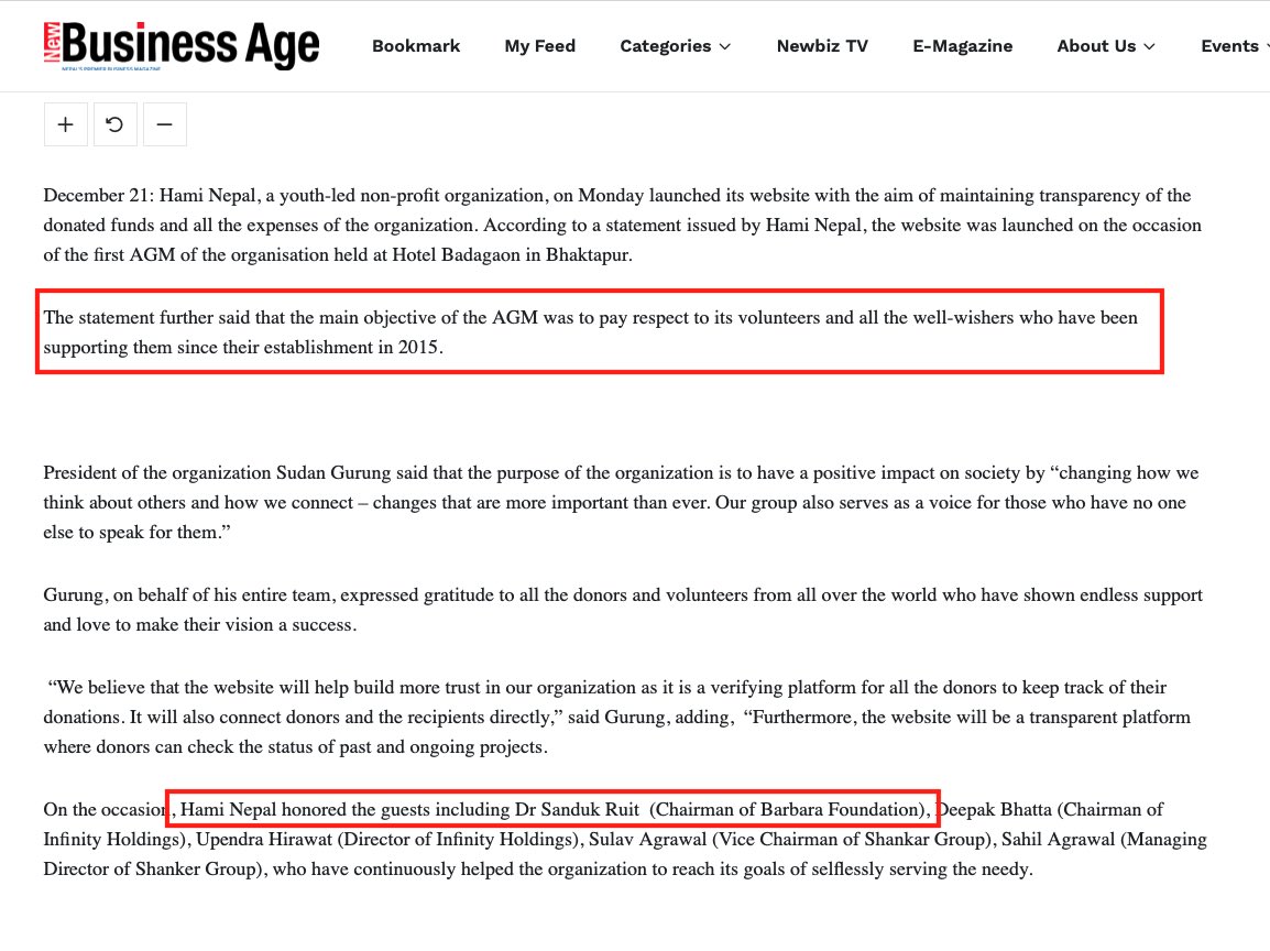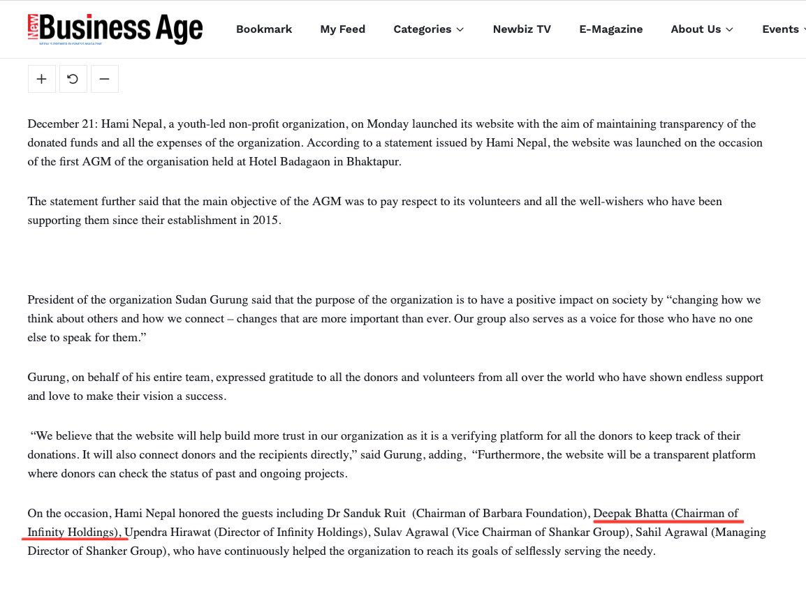 As of now, questions surrounding the organization’s funding raise eyebrows. One of its primary backers is businessman Deepak Bhatta, who, according to My Republica, is alleged to have orchestrated a controversial arms procurement deal involving Nepal Police and an Italian company. Bhatta, known for his arms trading connections, faces corruption charges in this case.