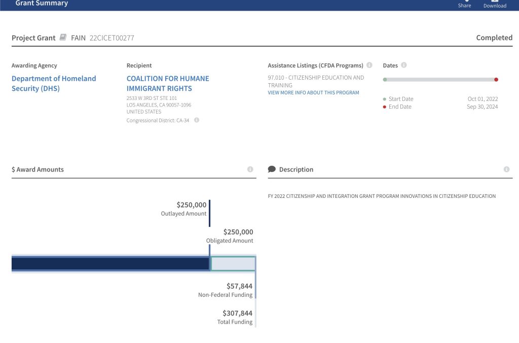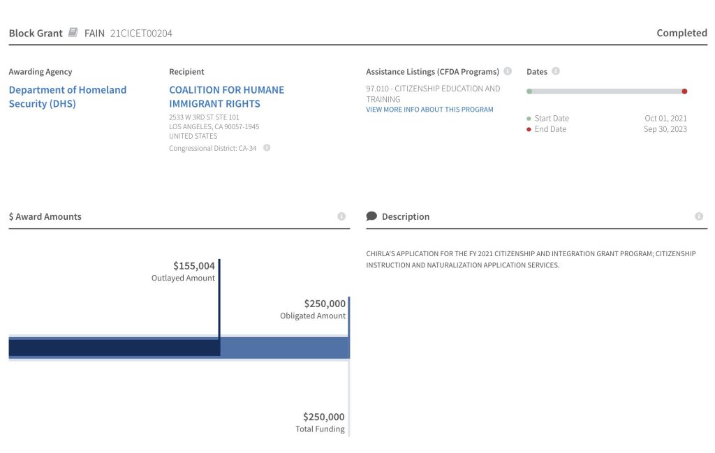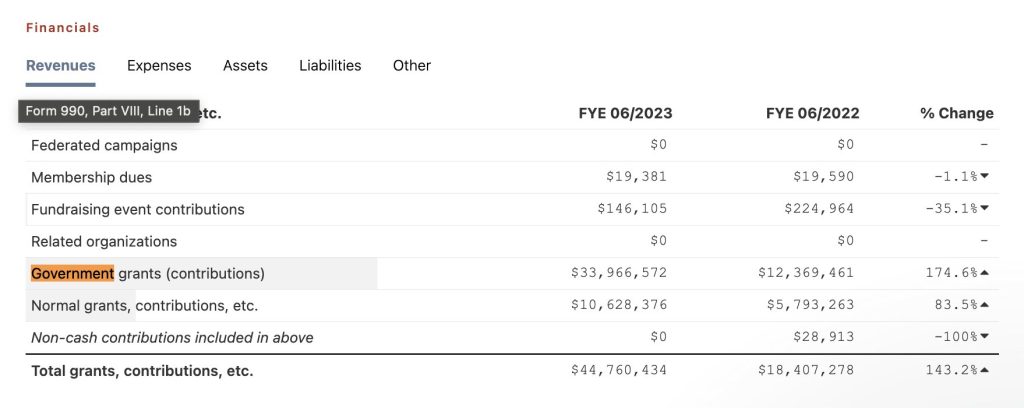 Meanwhile, CHIRLA, which presents itself as an immigrant advocacy organization, reported $34 million in government grants in its most recent fiscal year — a sharp increase from $12 million the previous year.