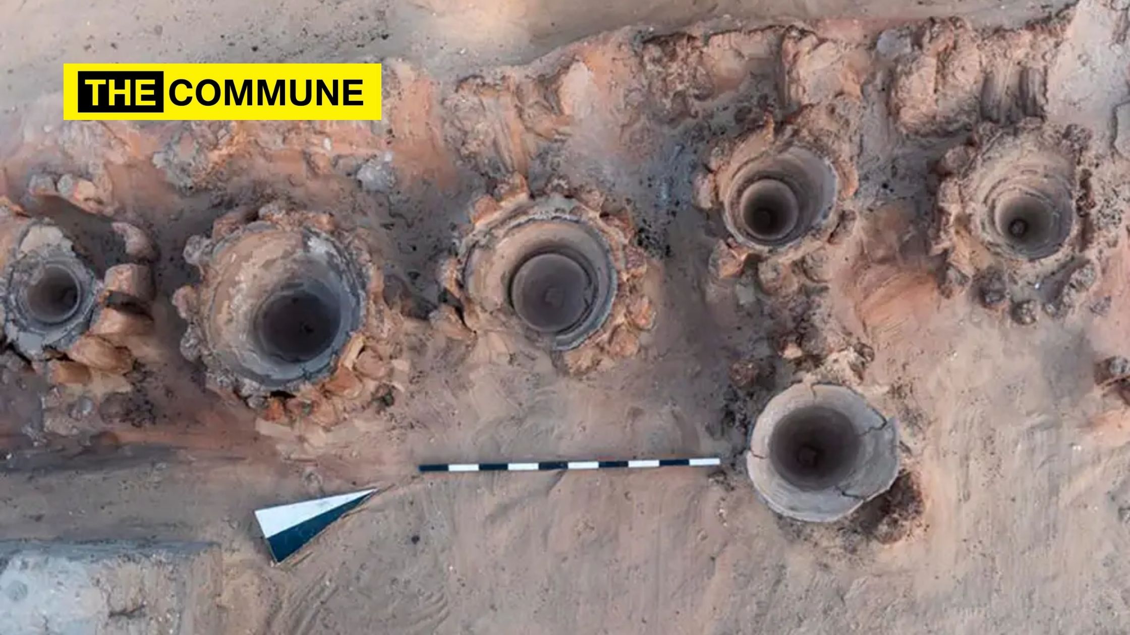 Pottery basins which archaeologists say had been used to heat up a mixture of grains and water to produce beer, in Abydos, Egypt, image provided February 13, 2021. Image Credits: AP