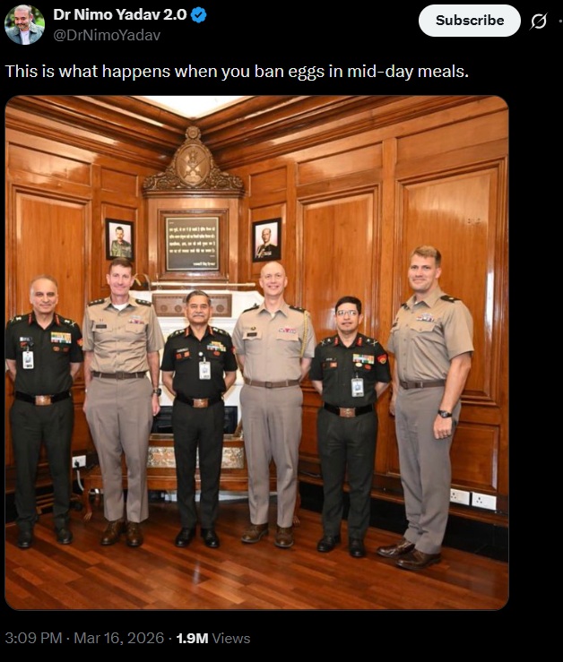 In March 2026, the account shared a group photograph of Indian and foreign military officers and captioned it: