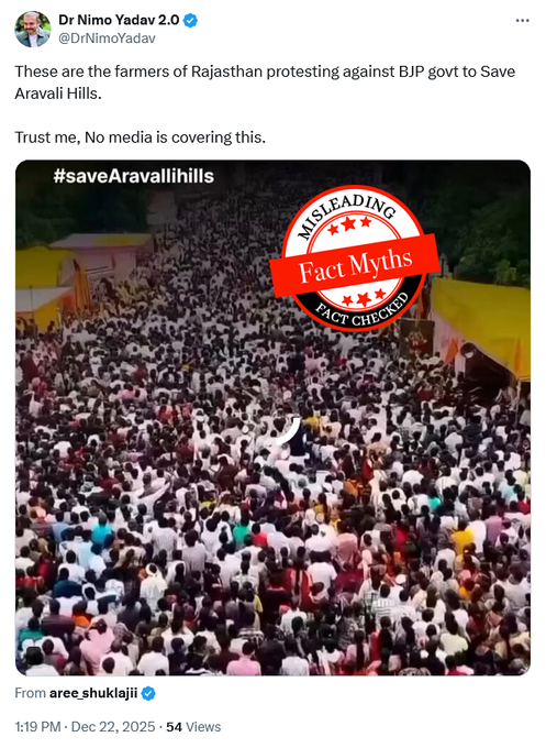 In December 2025, Nimo shared a video of a massive crowd with the caption: “These are the farmers of Rajasthan protesting against BJP govt to Save Aravali Hills. Trust me, No media is covering this.”
