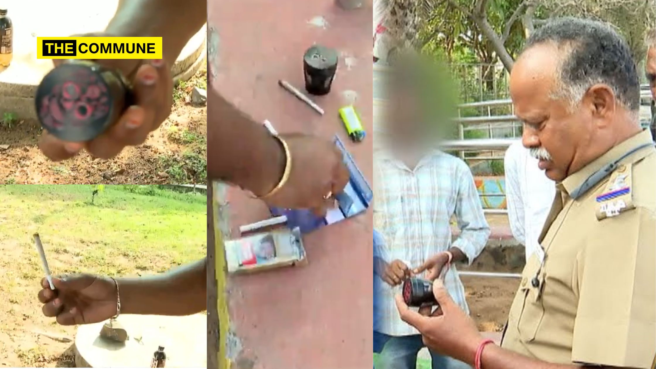 The incident unfolded near the GU Pope statue on Chennai’s Marina Beach, where the Greater Chennai Corporation (GCC) had erected shaded areas with barriers to restrict access. Despite these measures, the three youths managed to enter and were seated under the shade, engaging in suspicious conversations and laughter. When Chief Editor Jebarson of News Tamil 24X7 approached, he was astonished to observe them consuming ganja, aided by sophisticated marijuana crushers and OCB sheets. Concerned, he promptly alerted the patrol police.
